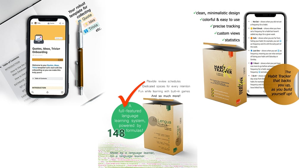 3 Notion templates: language learning, idea collector, habit tracker